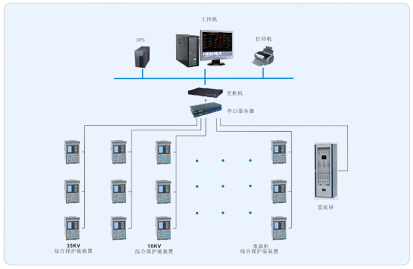 本項目有兩路35KV電源進線,經兩臺12500KVA變壓器變壓為10KV對項目進行供電,系統采用Acrel-2000型電力監控系統,整個系統采用網絡分布式結構,監控主機2層變電所值班室,綜合保護裝置、直流屏、多功能儀表等設備采用RS485總線組網接入變配電站內的數據采集器,進而接入變電站值班室電力監控主機。該項目實現了上海徐工工程機械有限公司變電站電力系統的智能管理。