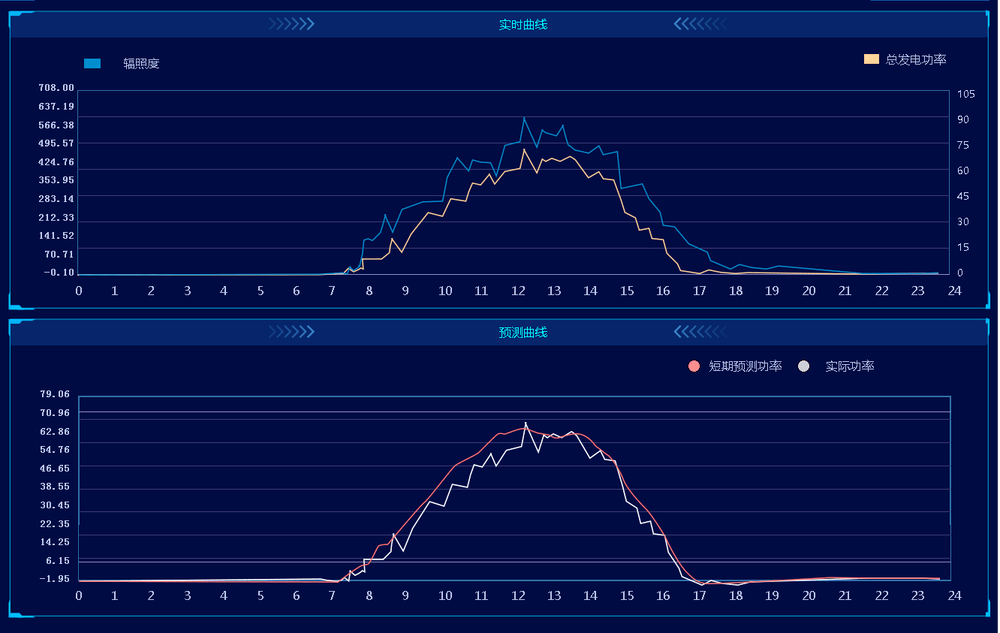 結合氣象數據,歷史數據對光伏、風力發電功率和負荷功率進行預測,并與實際功率進行對比分析,通過儲能系統和負荷控制實現優化調度,降低需量和用電成本。