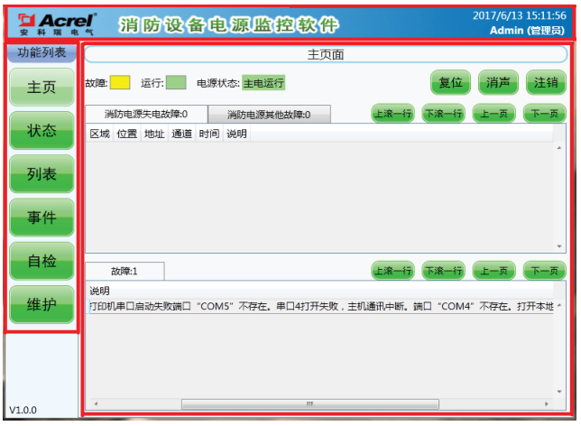 包含“軟件標題區”、“功能列表區”、“頁面顯示區”三部分,可以通過點擊“功能列表區”內按鈕進入各相關功能界面。