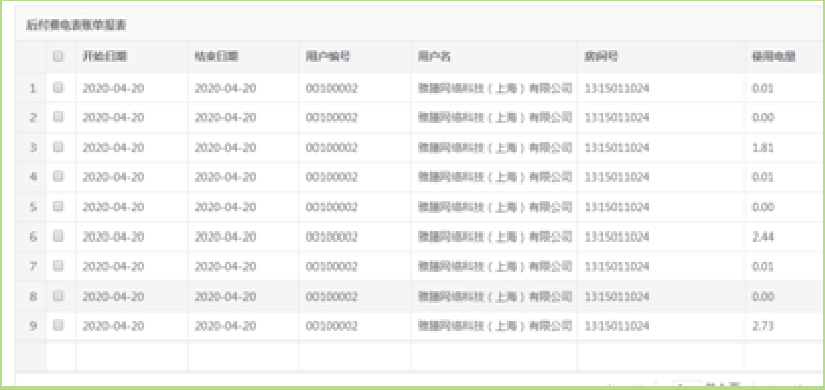 按日期生成后付費用戶周期用電費用,對數據進行確認后生成繳費賬單方便追蹤客戶繳費情況,可導出繳費賬單以及欠費賬單通知客戶。