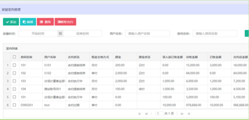 給每個房間添加房租協議,系統會自動根據設置的時間按期扣房租,房租采用預付費模式,如果余額不足則系統會強制拉閘,方便物業催繳房租。
