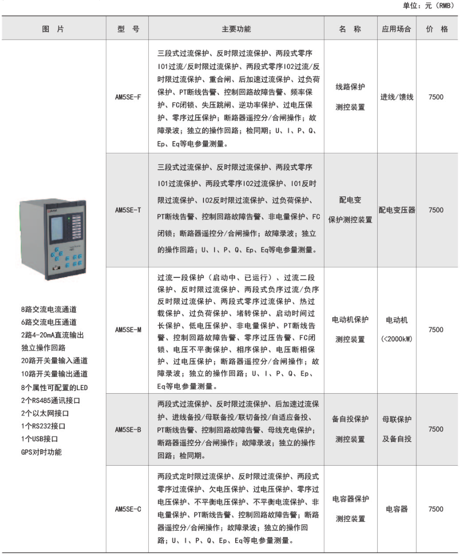 AM系列微機保護測控裝置集保護、測量、控制于一體,適用于35kV及以下電壓等級的用戶終端變電站(所),可實現用戶變電站的保護和測控。