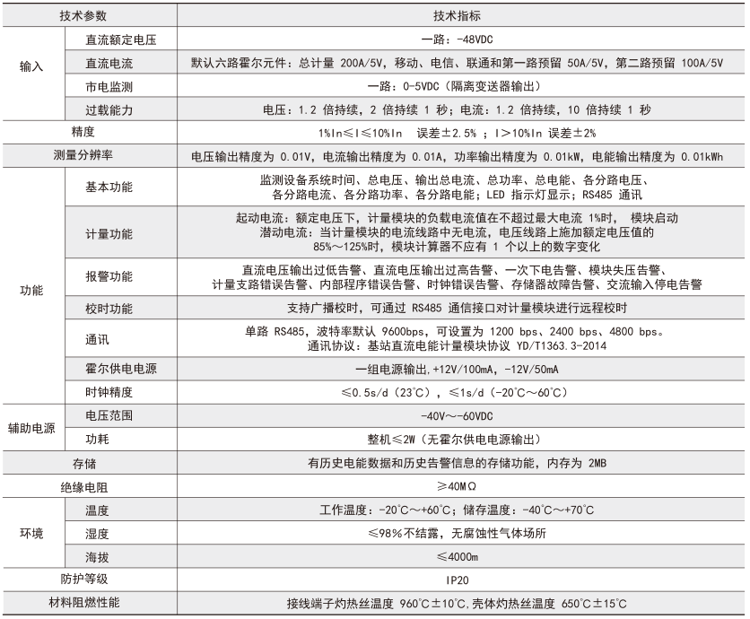 AMC16-DETT 基站直流電能計量模塊主要是針對有共享需求,且開關電源無分用戶電量計量功能的基站而設計的。儀表可對六個回路的直流電能進行計量,并可為配套的霍爾傳感器提供工作電流,同時可通過上位機軟件實現零漂校準,具有遙測、遙 信、遙調、實時電量計量、供電質量異常告警、信息存儲及處理、信息交互等功能。該模塊可分別計量三家運營商的直流用電量,為基站節能改善提供詳細的數據依據,為直流配電設備提供分項計量解決方案。