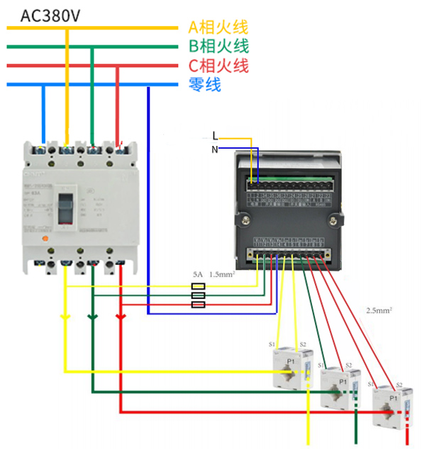 技術(shù)要求:輸入相電壓220V;電流變比400A/5A;接線方式三相四線;準確級0.5級。