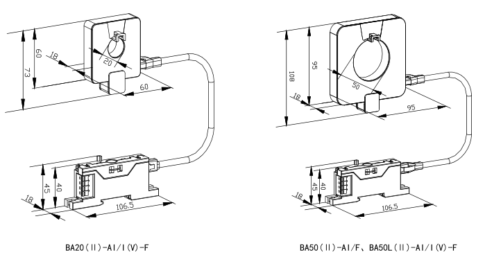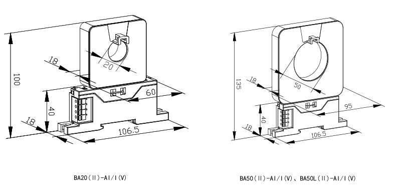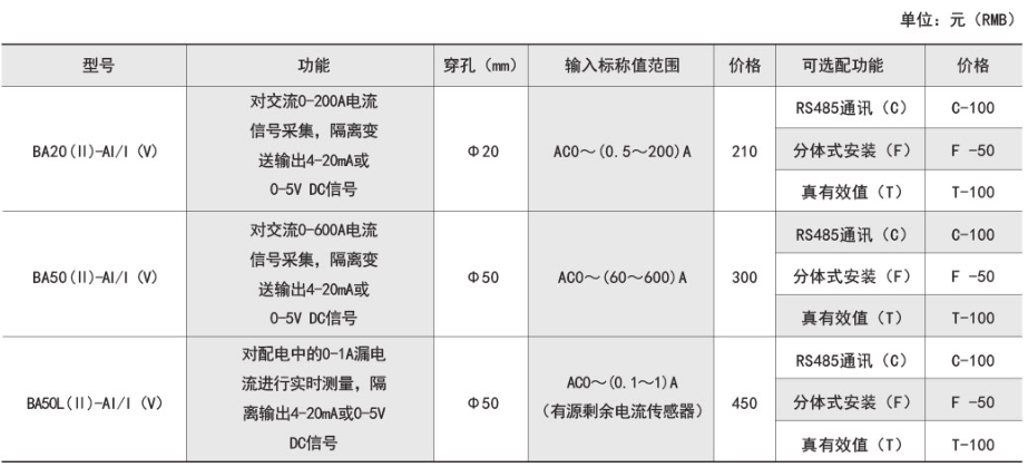 具體型號:BA20(Ⅱ)-AI/I一體式平均值交流電流傳感器