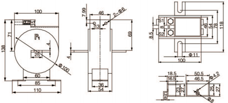 | 規格 | 額定電流比(A) | 準確級 | 穿心匝數 | 母排規格/根數 | 電纜最大外徑(mm) | |