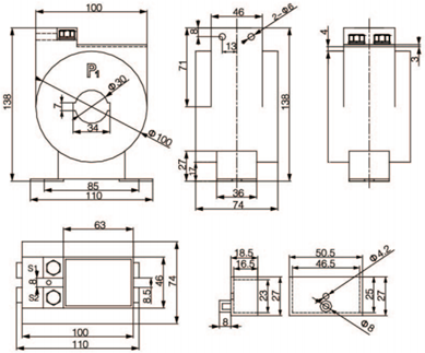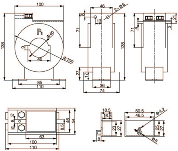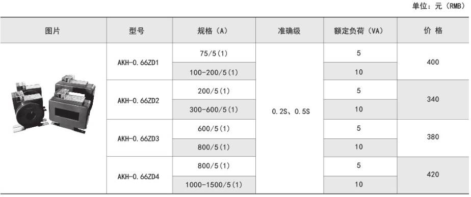 | LMZD4-0.66 (AKH-0.66ZD4) | 800/5(1) | 5VA | 1 | 100×10/1-3 | |