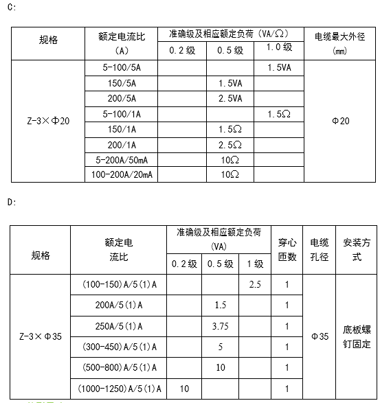 技術要求:100A/5A 1級 1.5VA 1匝