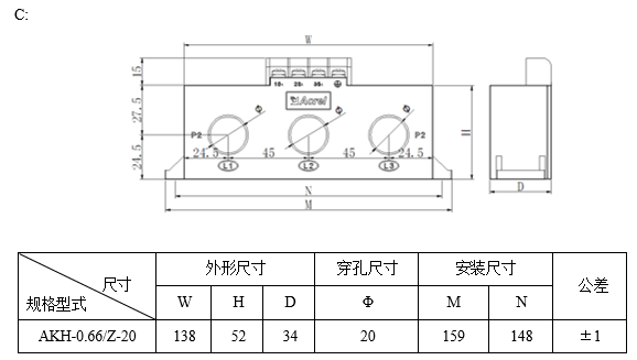具體型號:AKH-0.66/Z-3*Φ20