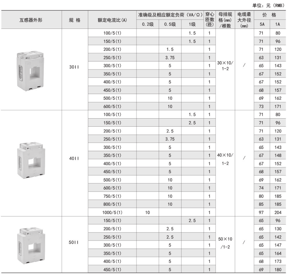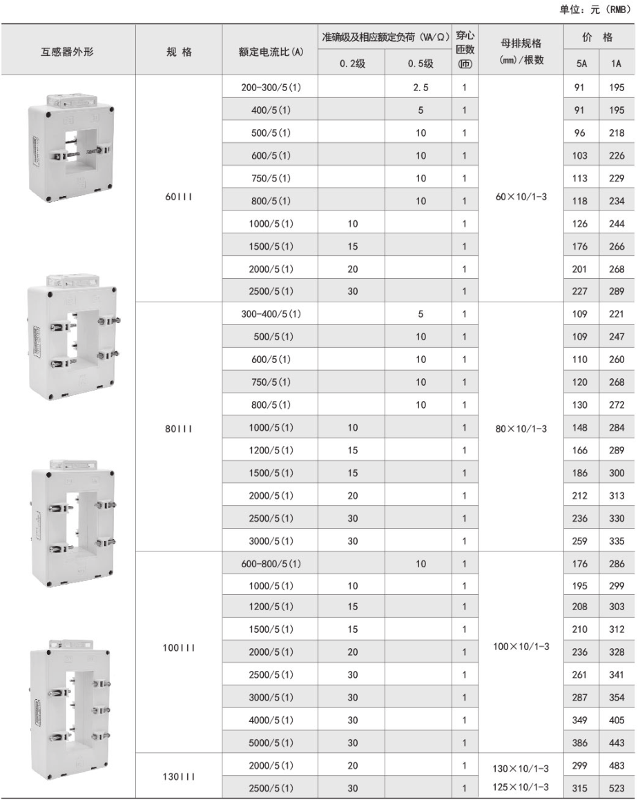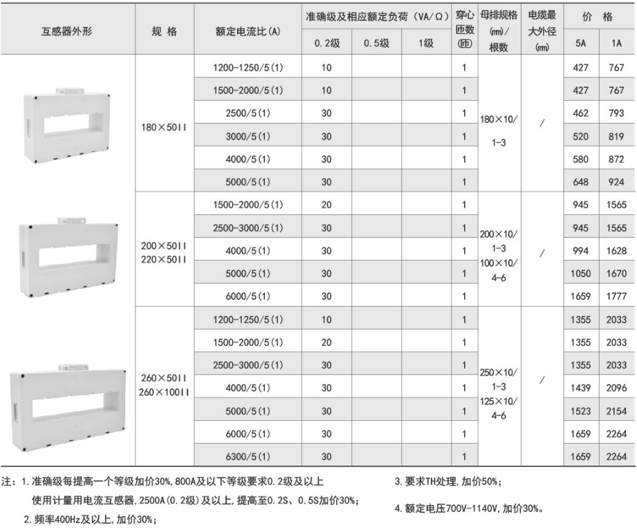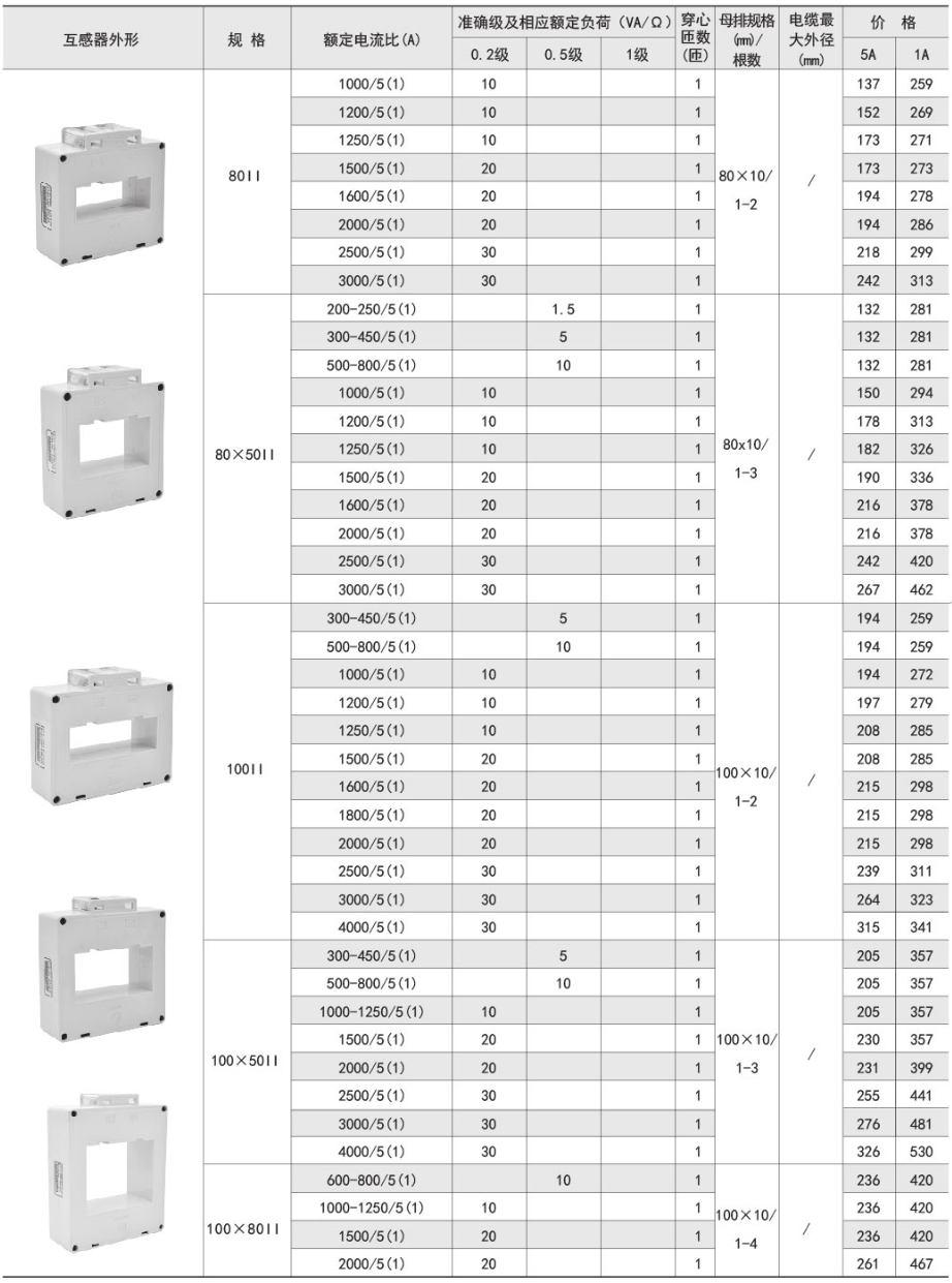 該系列互感器作為交流電流信號采集元件,可與測量儀表配套使用,一次電流測量范圍5-6300A,二次輸出5A或1A,測量范圍為額定值的5-120%。